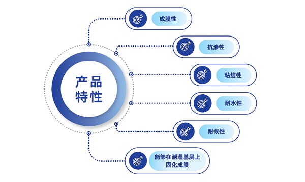 本产品是以丙烯酸酯合成高分子乳液为基料,加入水泥、无机固化剂和多种助剂配制而成的双组份聚合物防水涂膜材料。
